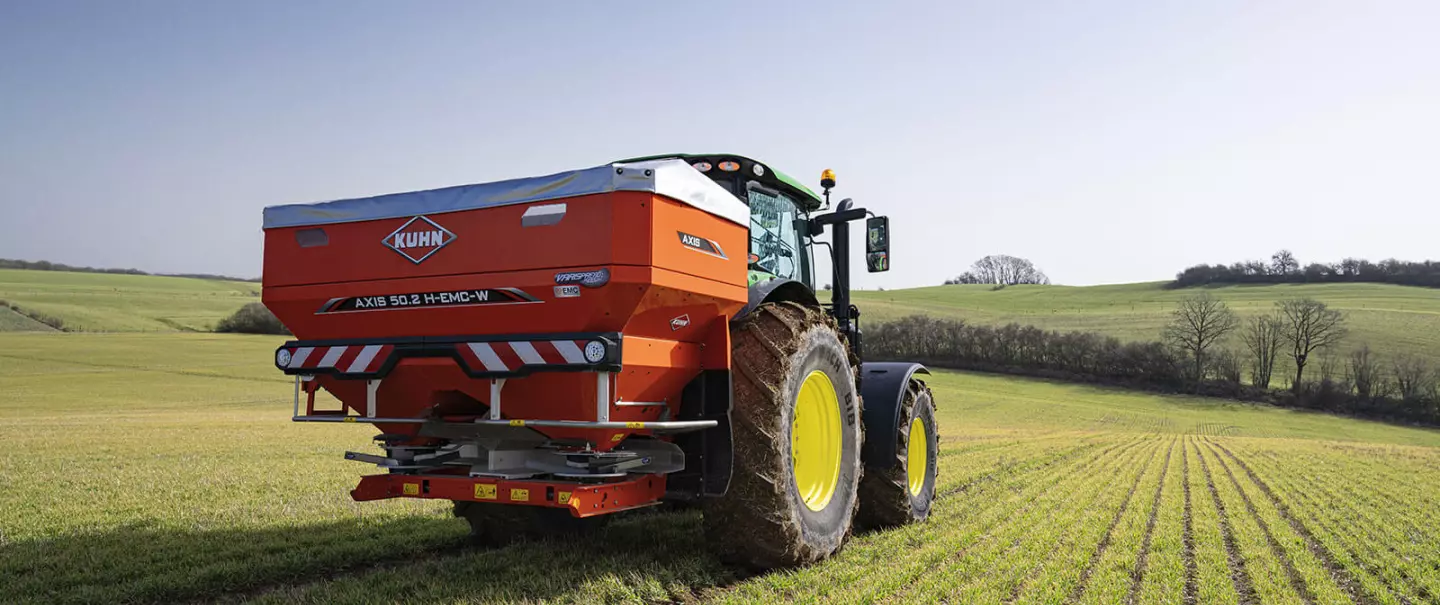 Durante más de 20 años, KUHN ha sido pionero en la fertilización de precisión con numerosas innovaciones. La más destacada es el sistema EMC (Control Electrónico de Masa), que regula automáticamente la tasa de aplicación a izquierda y derecha cada segundo, desde el primer segundo, de forma independiente, como si se estuviera pesando cada disco. Las abonadoras suspendidas AXIS también se benefician de la distribución CDA para una distribución óptima y precisa en todas las condiciones. Con la gama de abonadoras AXIS y los terminales ISOBUS, se equipa con una abonadora que cuenta con la última tecnología.