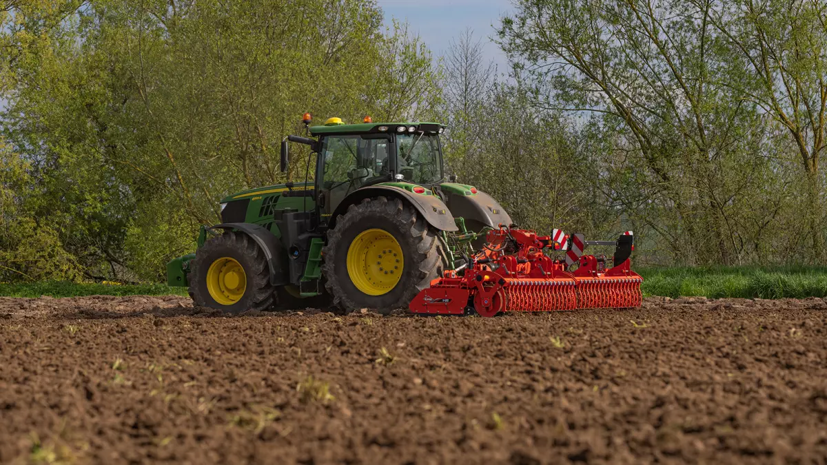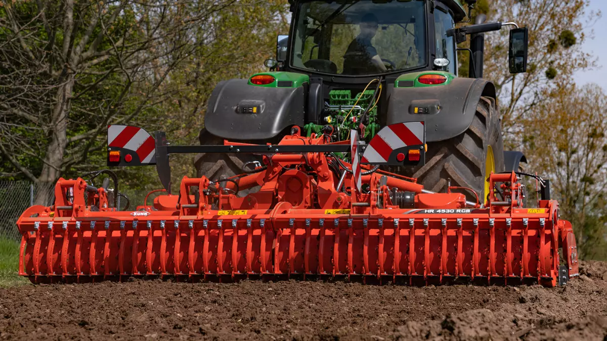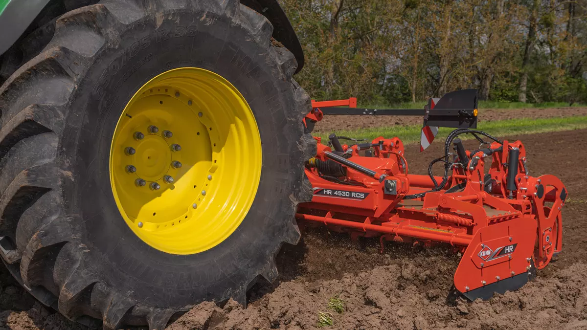 Las versiones RCS de las gradas rotativas KUHN están diseñadas para incorporar una barra de siembra, que se fijan al bastidor del rodillo de la grada rotativa. Las ventajas son numerosas: un centro de gravedad lo más cerca posible del tractor, una integración perfecta y una menor potencia de elevación necesaria.