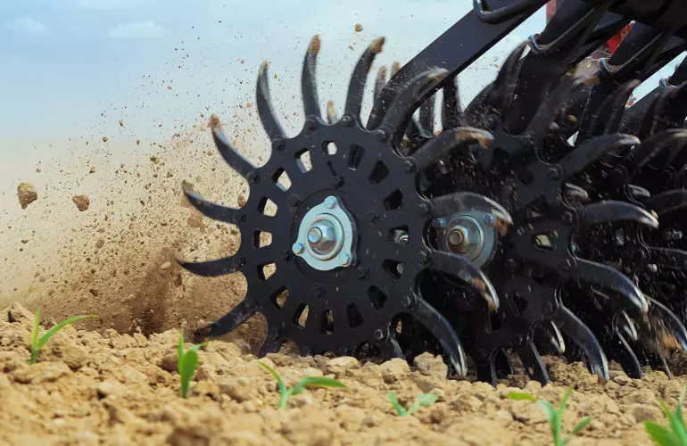 La azada rotativa STARLINER es una herramienta mecánica de deshierbe que arranca las malas hierbas jóvenes, lo que tiene un efecto beneficioso para el cultivo. Equipada con estrellas giratorias, esta máquina también rompe eficazmente las costras del suelo causadas por las fuertes lluvias y desmenuza la tierra. Esto afloja y airea el suelo, favoreciendo la mineralización y estimulando el crecimiento de los cultivos.