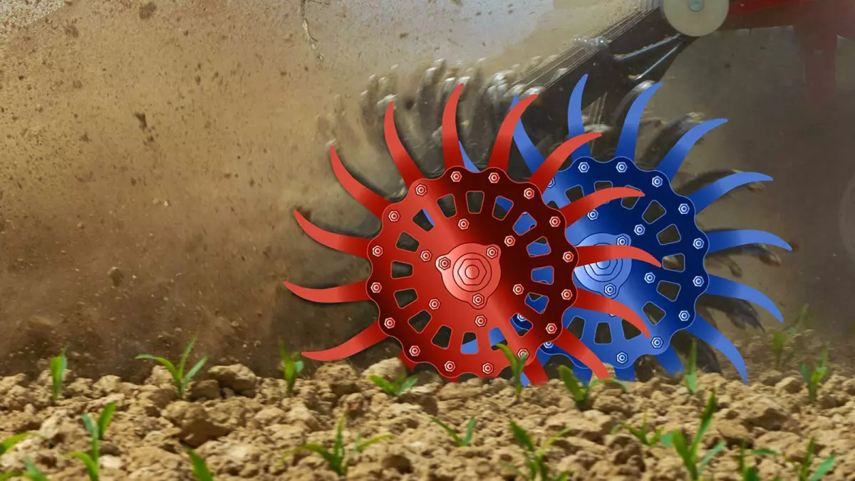 La azada rotativa STARLINER es una herramienta para el desherbado mecánico equipada con estrellas giratorias. Se utiliza para romper las costras, aflojar el suelo y arrancar las malas hierbas.