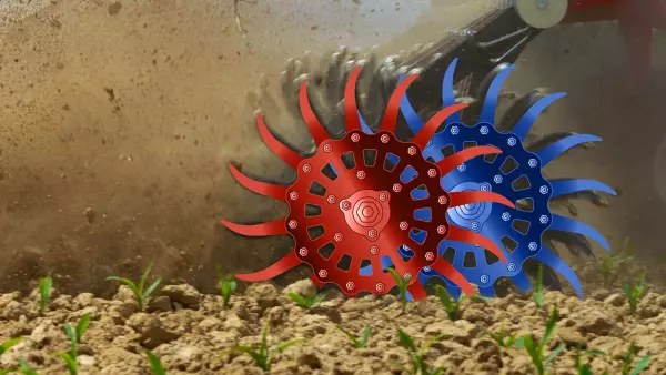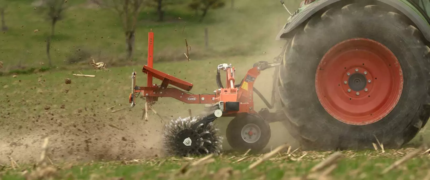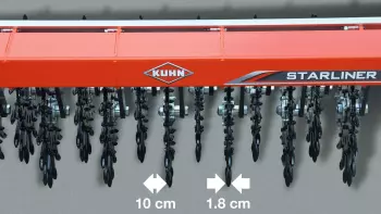 Ya sea para variedades de cultivos de invierno o primavera, como cereales, maíz o soja, las estrellas giratorias de la azada rotativa STARLINER se adaptan perfectamente para trabajar en presencia de residuos de cultivos de mínimo laboreo, por ejemplo. Estas estrellas son independientes entre sí y están accionadas por muelles, lo que permite un buen seguimiento del terreno a altas velocidades (de 12 a 25 km/h) y garantiza un alto rendimiento de trabajo.