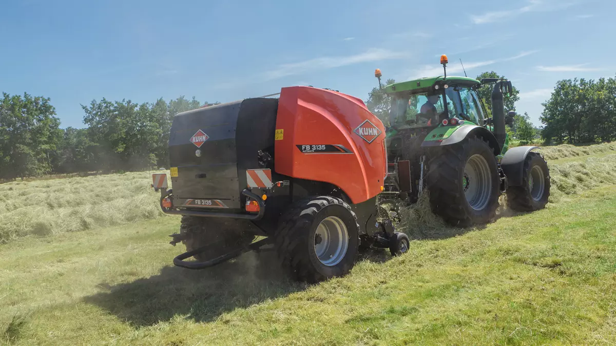 El pick-up de levas de los modelos FB 3130 y FB 3135 maximiza la capacidad total de la máquina. Con un ancho de trabajo de 230 cm, la maquina puede trabajar sobre todas las hileras y con un rendimiento no le decepcionará, incluso en las condiciones más duras. Las púas rectas del pick-up ayudan a levantar el producto y reducen la posibilidad de que se enrolle. La excéntrica del pick-up hace que cuando las púas se esconden en la parte posterior, lo hagan de forma vertical para evitar pellizcar el forraje, haciendo que esta sea la única recogida híbrida del mercado actual. Por tanto, puede gestionar todo tipo de forraje, desde paja larga a hierbas de otoño más cortas con hojas frágiles. La recogida incluye un marco de péndulo de serie y ruedas de recogida de pivote opcionales para permitir que la recogida se adapte a cambiantes condiciones del terreno.