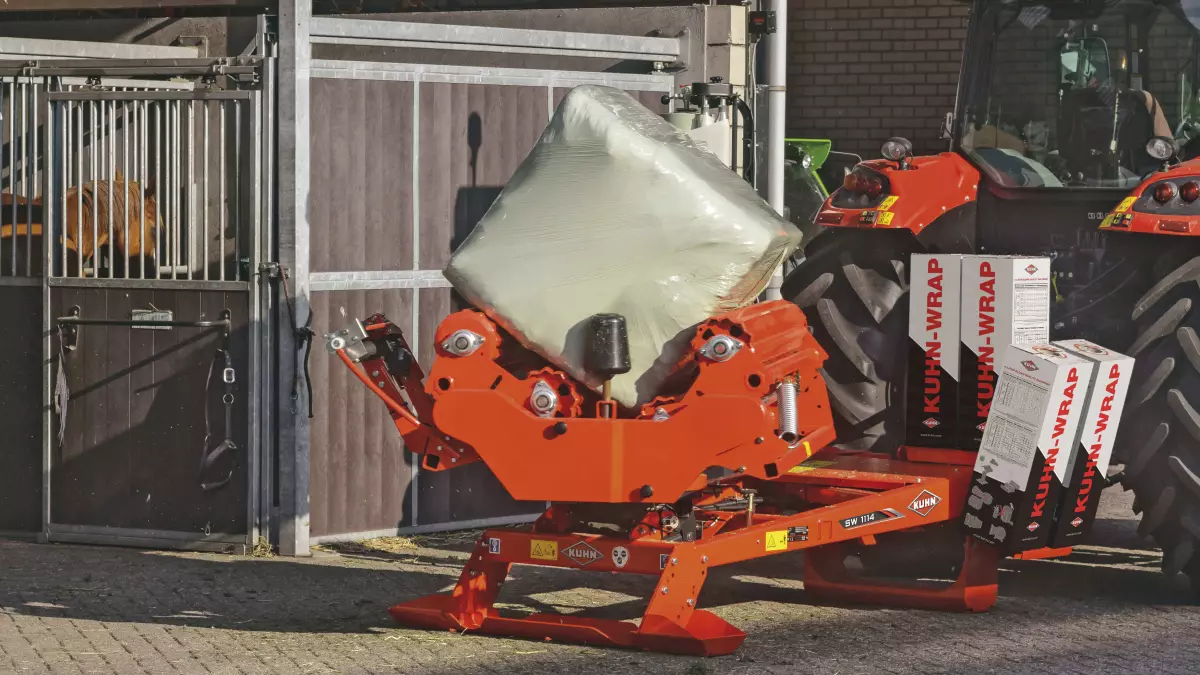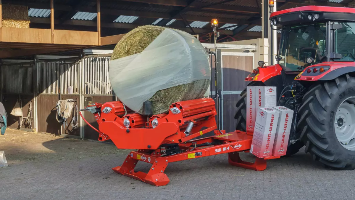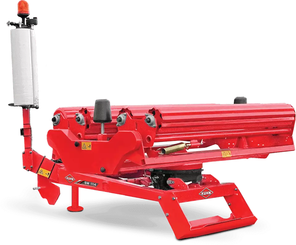La versión con controlador electrónico SW 1114 (C), equipada con control remoto RF de serie, se puede manejar desde un cargador mientras se utiliza un generador eléctrico o un segundo tractor para el suministro de aceite y electricidad. Esto permite que una sola persona realice las operaciones de carga, encintado y apilado. Encintar las pacas en el lugar de almacenamiento significa que el riesgo de deterioro del plástico se reduce al mínimo. La versión C incorpora de serie un sistema de parada automática cuando el rollo de plástico se termina ose rompe, la función Play/Pause (Activar/Detener) y la posición de carga a 90°.