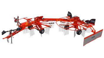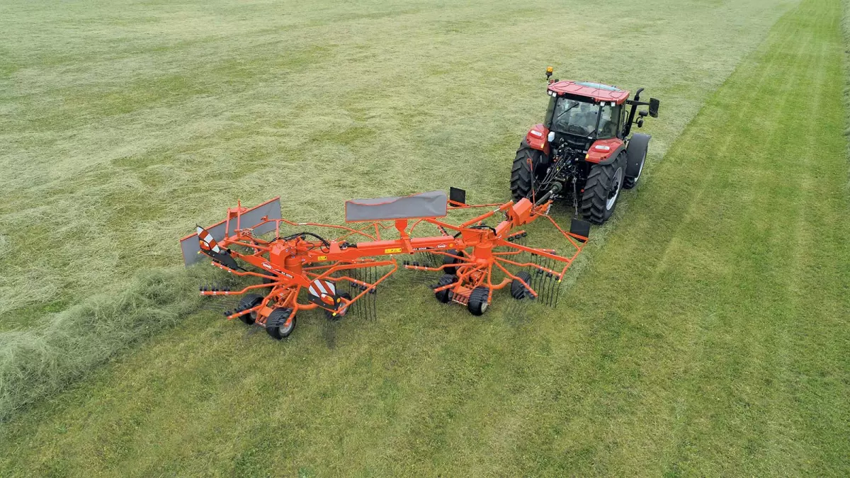 Para trabajar con forrajes muy densos o realizar hileras por la noche, el modelo GA 6002 puede configurarse para descargar dos hileras en cada pasada.