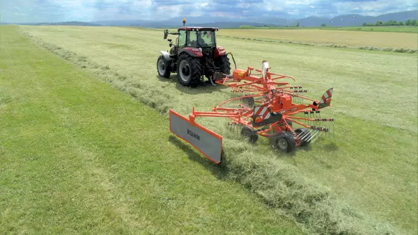 La anchura de la hilera se puede ajustar hidráulicamente de 3,00 a 5,80 m. Las densidades variables del forraje, el sorteo de obstáculos y el acabado de las parcelas ya no suponen ningún problema.