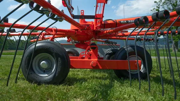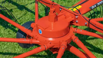 Los dispositivos de accionamiento de los brazos de horquillas están alojados en un cárter completamente cerrado y no requieren ningún mantenimiento especial. Para una mayor robustez, los cojinetes de los brazos de horquillas están fijados tanto en la cubierta superior como en la inferior del cárter.