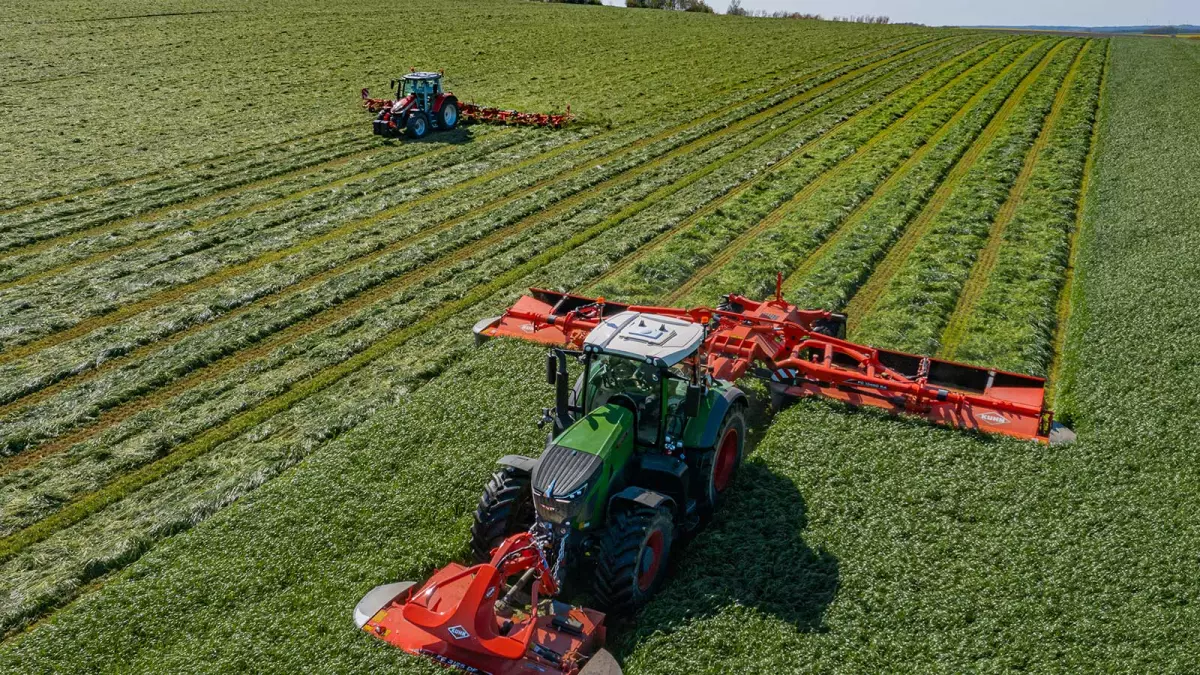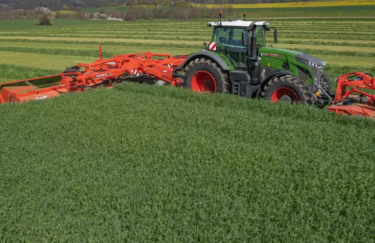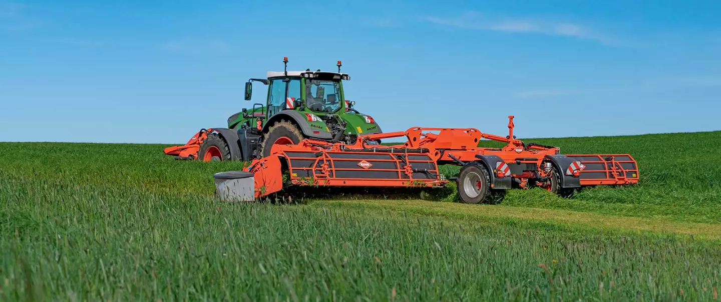 Con una anchura de corte de 13,40 m, la segadora FC 13460 RA supera la anchura de corte de la mayoría de las segadoras triples suspendidas en un 25-30 %. Su excepcional rendimiento permite segar rápidamente grandes superficies.