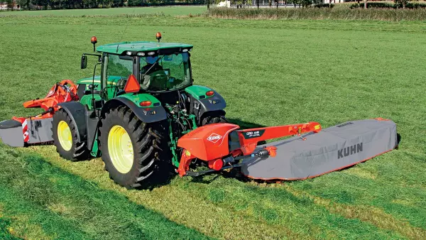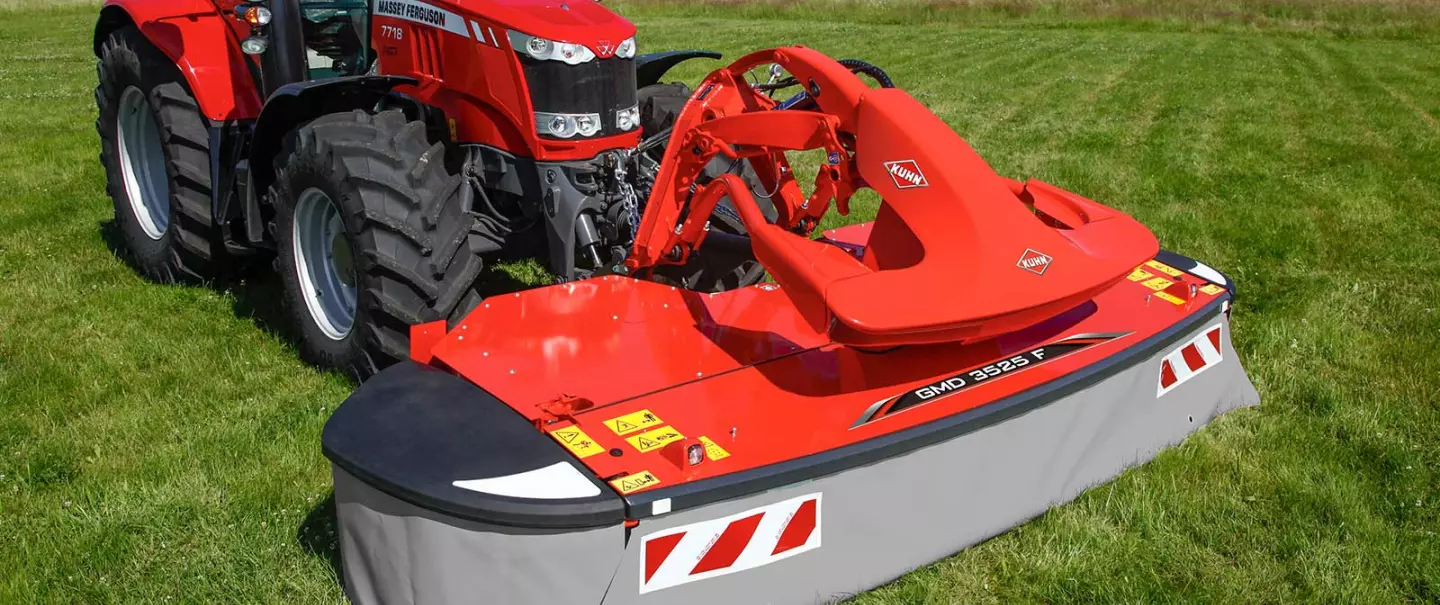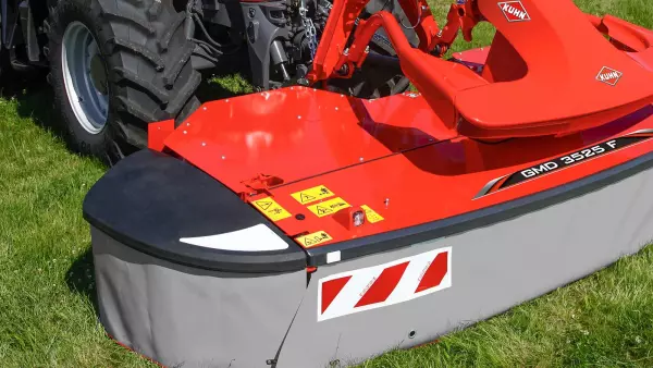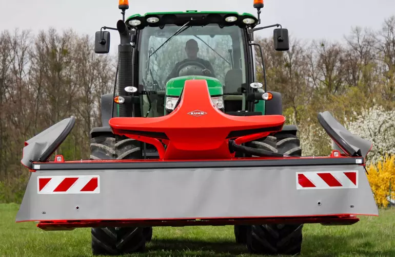 El sistema de seguridad PROTECTADRIVE está integrado en la barra de corte para hacer frente a los impactos y obstáculos encontrados durante la siega. En caso de producirse un impacto violento de un disco contra un obstáculo, el eje del disco se secciona por encima del cojinete, gracias a un punto de cizallamiento de dimensiones y situación adecuados. Los piñones quedan así protegidos, permitiendo a la máquina estar de nuevo operativa rápidamente con un coste de reparación reducido.