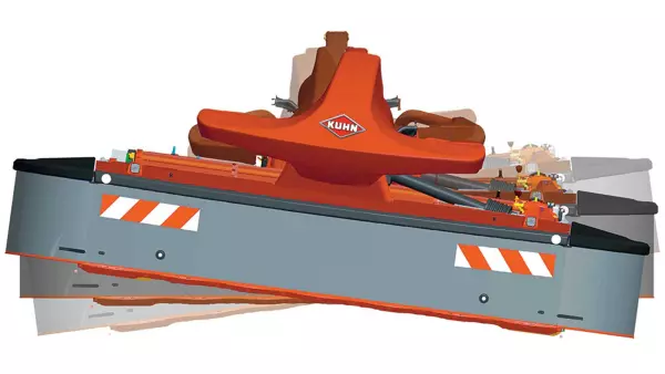 Para aumentar la durabilidad de la segadora, se han integrado unos amortiguadores entre la barra de corte y el chasis. La estructura de la máquina se ve menos afectada por los impactos, incluso al trabajar a velocidades de avance elevadas.