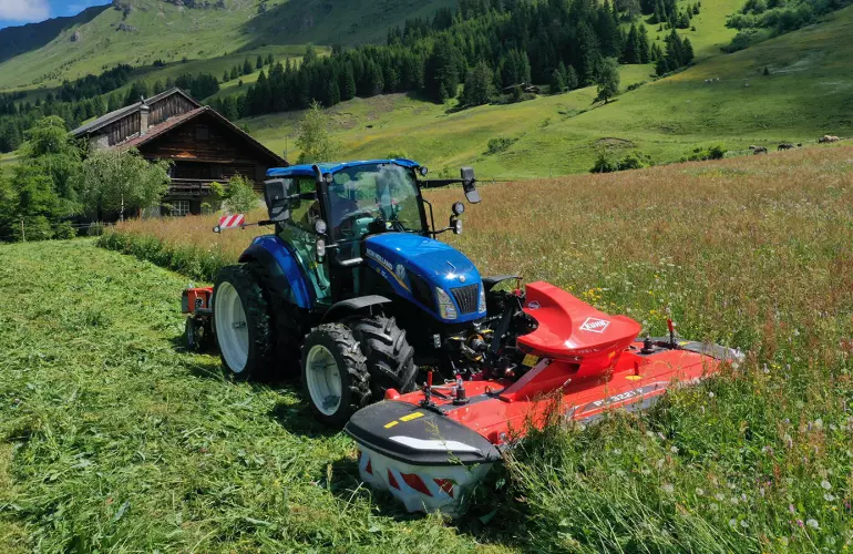 Los tambores redondos no transportan bien el cultivo, motivo por el cual KUHN usa tambores con dos laterales planos para un transporte óptimo del forraje, sin riesgo de obstrucciones. La velocidad de evacuación del forraje afecta a la calidad de la siega. Las tiras de transporte intercambiables te permiten usar más o menos tiras en función de las condiciones y evitar que los tambores se desgasten.