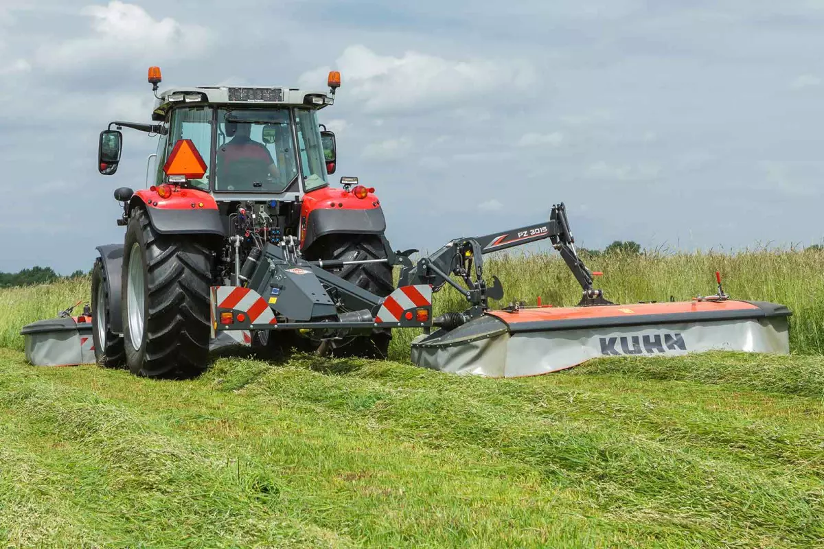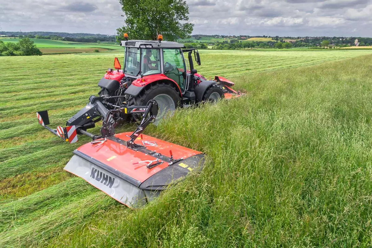 Los tambores redondos no transportan bien el cultivo, motivo por el cual KUHN usa tambores con dos laterales planos para un transporte óptimo del forraje, sin riesgo de obstrucciones. La velocidad de evacuación del forraje afecta a la calidad de la siega. Por este motivo, KUHN ha decidido usar tiras de transporte intercambiables.
