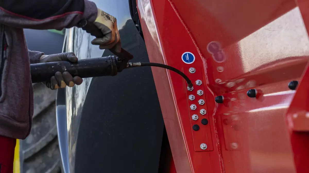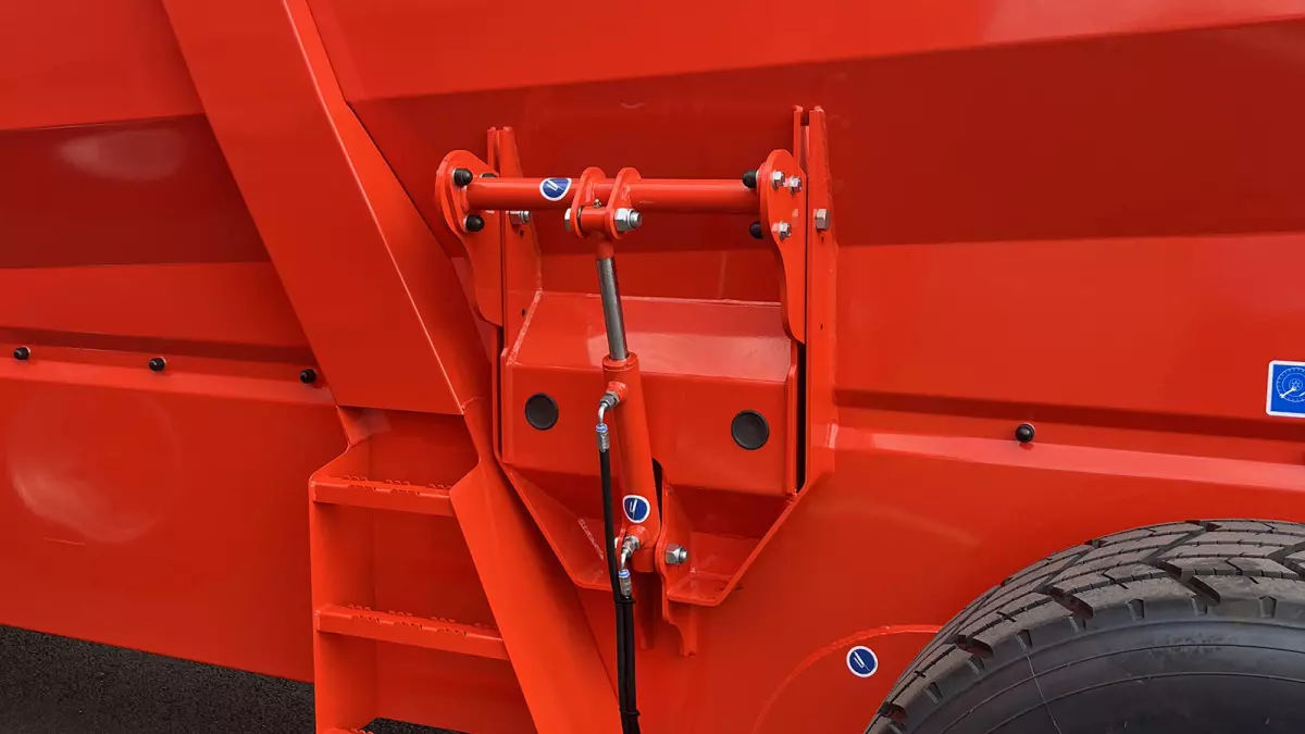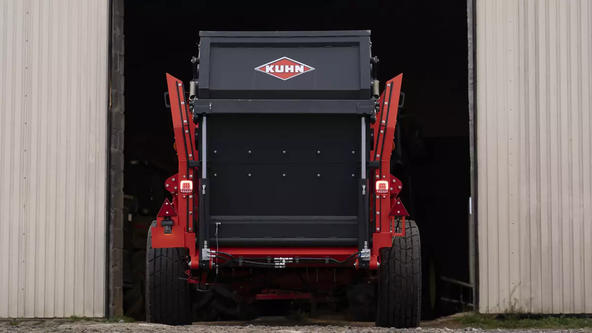 La forma en «V» de la caja facilitará su carga por arriba (en el caso de cargas de ensilado). Con una anchura de la caja de 1,40 m a nivel de la cinta y de 1,65 m en la parte superior de la caja, la carga de pacas redondas y cúbicas por la parte trasera también será más fácil sin riesgo de enganches.