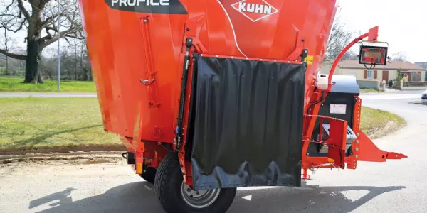 Remolque mezclador PROFILE 1 CL con 1 sinfín vertical con distribución transversal y diseñado con una caja ancha. Disponible en 9 y 15 m3, está pensado para rebaños de 45 a 110 vacas lecheras.